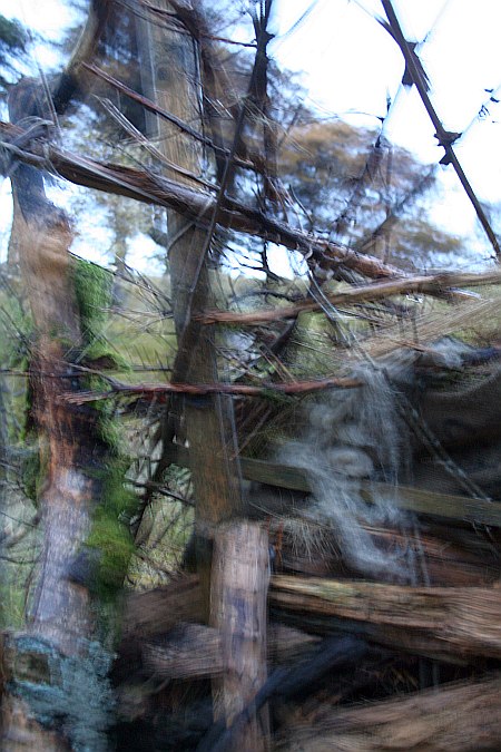 Although this was not an evening to dwell for long on the exposed fellside, it was an exhilarating raid on all the senses. The roaring wind, the musky autumn earth, the cold slap on the cheeks and the acid tang on the tongue filled a cornucopia of experience for further artwork back in the slightly warmer and slightly drier studio at home. The shelter has been stripped of any covering, so I shall look forward to finding new ways of marking this place as the autumn deepens into winter.